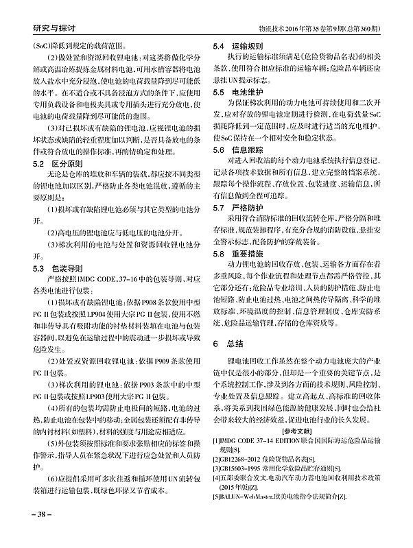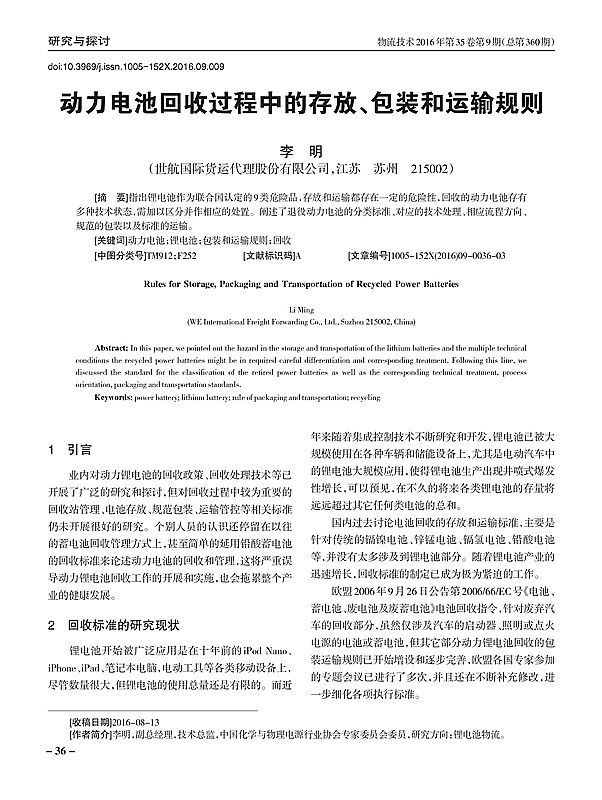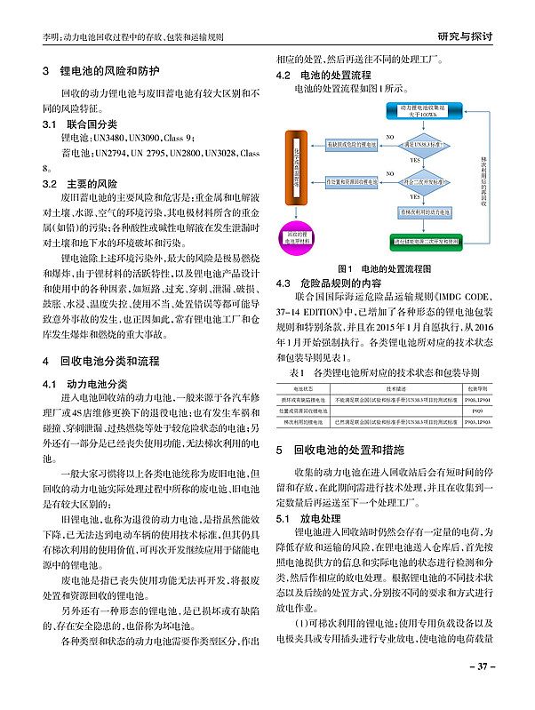 指出锂电池作为联合国认定的9类危险品,存放和运输都存在一定的危险性,回收的动力电池存有多种技术状态,需加以区分并作相应的处置。阐述了退役动力电池的分类..